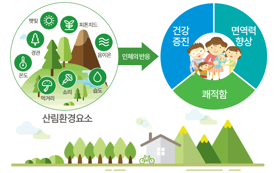 숲은 인간의 몸과 마음을 건강하게 합니다.