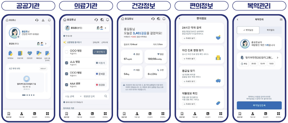 공공기간에서 보유중인 개인의 건강정보를 스마트폰에서 조회 · 저장 · 활용 할 수 있는 앱으로, 진료이력 및 건강검진이력(건보공단), 투약이력(심평원), 예방접종이력(질병청)을 통합조회 · 관리 할 수 있는 앱 입니다.