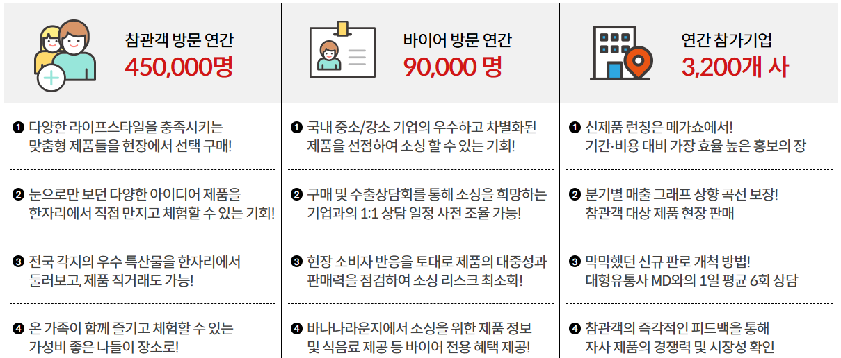 질 좋고 경쟁력 강한 제품을 찾는 소비자들이나, 국내외 소싱을 목적으로 하는 바이어 및 유통 관계자들에게 중요한 박람회로 자리잡고 있습니다.