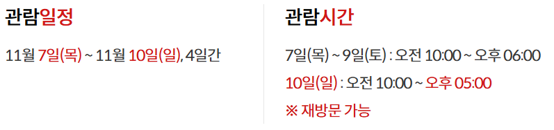 2024년 11월 7일(목) ~ 11월 10일(일), 4일간