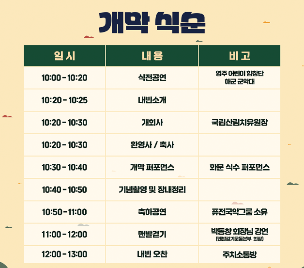 - 주최/후원 : 한국산림복지진흥원 국립산림치유원 / 경상북도, 영주시