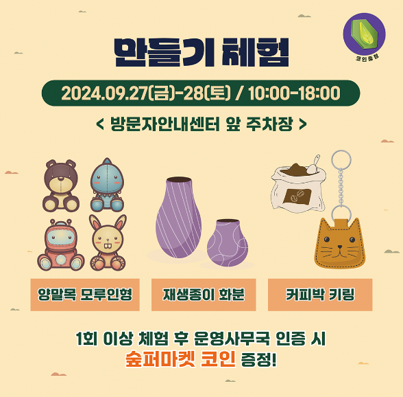 l 대여물품 : 숲크닉 KIT(바구니, 돗자리, 원목 미니탁자, 카페 음료 2잔 및 구움과자류 3종 무료교환권, 랜덤 보드게임 1종 등)