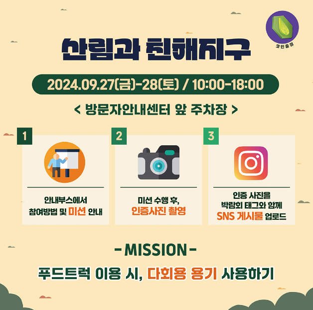 - 프로그램 : 개막식, 산림치유프로그램, 산림문화 및 전시 프로그램, 지역상생 프로그램, 탄소중립 프로그램, 세미나 및 이벤트 등