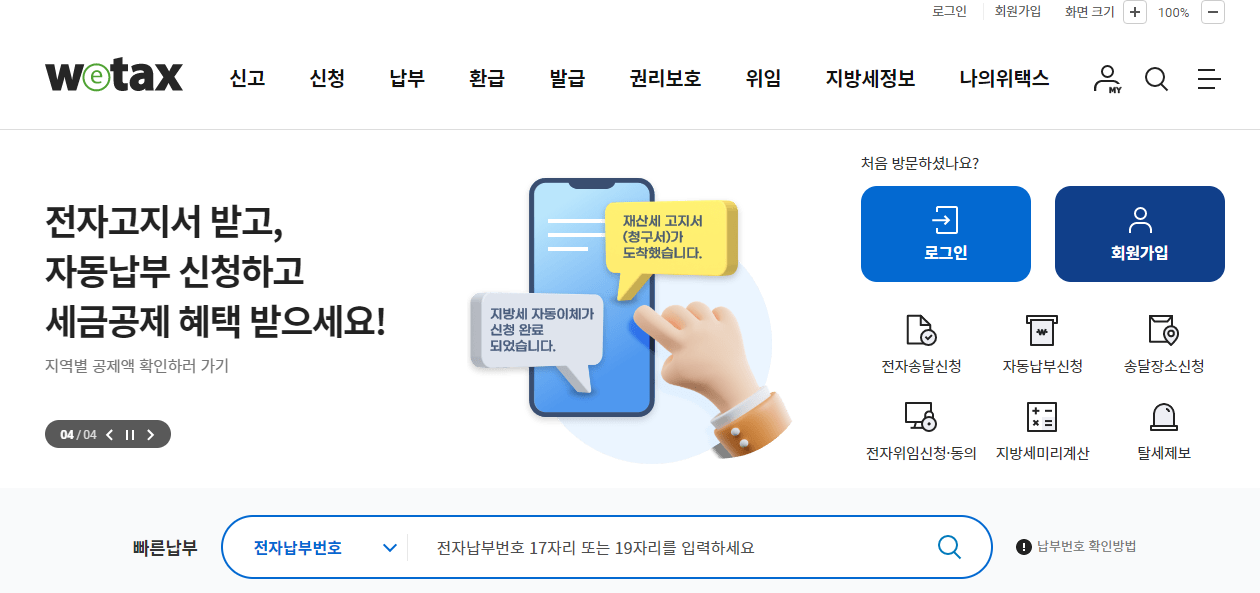 ○ 통장이나 카드가 있다면 가까운 은행 현금자동입출금기(CD/ATM)를 이용해 납부할 수 있고, 위택스와 스마트 위택스(모바일 앱)를 이용하면 전국 모든 지방자치단체의 지방세를 조회하고 납부할 수 있습니다