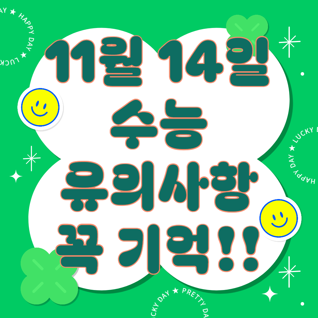 지금까지 열심히 달려온 우리 수험생들의 노고가 헛되지 않도록 수능 전날과 당일 유의해야 할 점과 준비물 등 안내드립니다. 미리 준비해서 모든 역량 다해 최선의 결과 있기를 바랍니다.